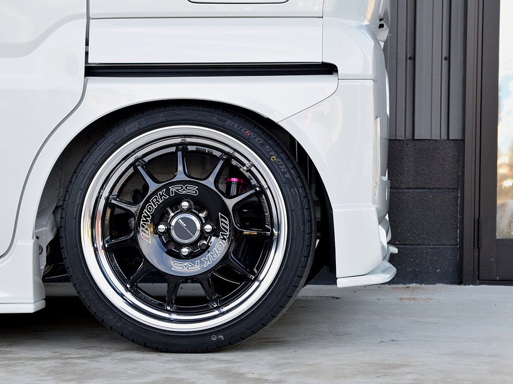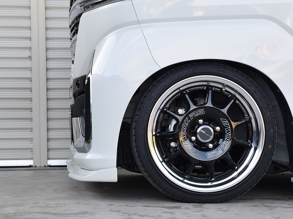 ノーマル車高ではもちろんダウンサスほどのダウン量でもかなりの重厚感を得ることができるパーツです。